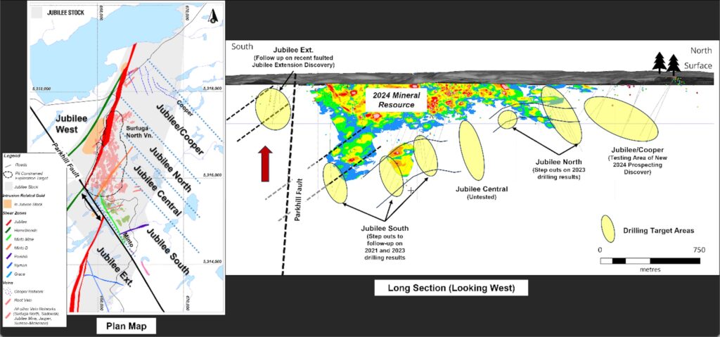 In each of the target areas, numerous mineralized zones are planned to be concurrently tested with the Jubilee Shear. This will include some of the more regional targets identified based on the results of the 2024 prospecting program and the reevaluation of exploration targets on the property. The Company anticipates being able to report the preliminary results of the program in Q1 2025.