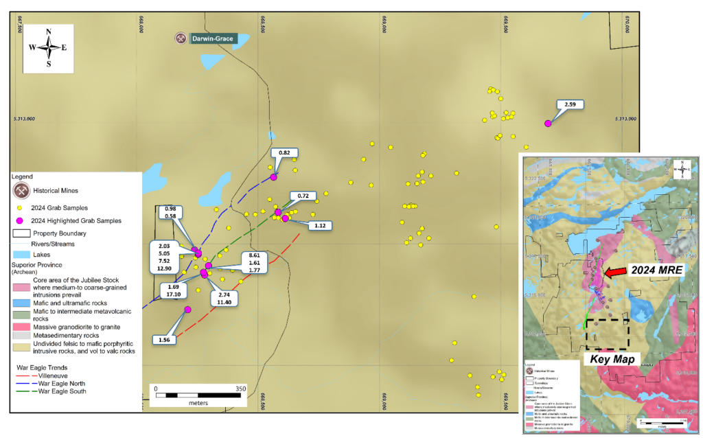 Figure 1 – Location of the 2024 grab samples in the War Eagle Area