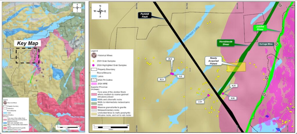 - The new zone of gold mineralization discovered in the Hornblende Shear in the Jubilee West area could add, with additional exploration, 500 m of strike to the south to the known zones of gold mineralization in the Hornblende Shear. The discovered mineralized shear corresponds to overprinting orogenic mineralization on older intrusion-related gold (“IRG”) mineralization zones. The Hornblende/IRG corridor was not included in the 2024 MRE. Comparable mineralization occurs in the Jubilee Shear as relics zones of early orogenic mineralization overprinted and remobilized during peak deformation in that structure.